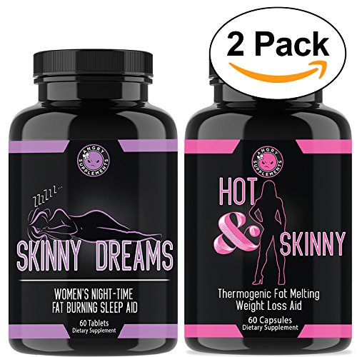 Angry Supplements Hot Skinny Thermogenic Skinny Dreams Sleep Aid Women’s Weight Loss Combo (2-Pack Bundle) Day and Night-time Diet Pills Fast Fat Burning Non-GMO Starter Kit (2-Pack 120ct)