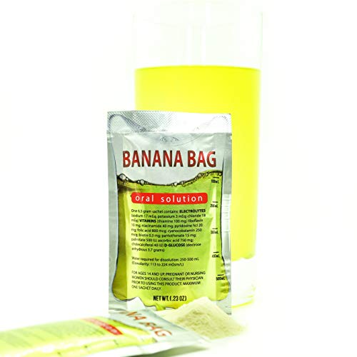 Hydration and vitamin supplementation for severe dehydration induced by strong exercise diarrhea/vomiting rigorous air travel scorching hot climates alcohol use exhaustion on top of poor dietary intake and/or any kind of chronic illness. Comparable to that of intravenous sodium and vitamin infused drips often used in ER’s and hydration clinics but as a raw powder blend for reconstitution in a bottle of water instead. Clinically formulated to combat dehydration by mouth and using only the necessary ingredients your body needs the Banana Bag Oral Solution can deliver vital electrolytes water and vitamins back into the bloodstream when your body needs it most… but without the needle. The Banana Bag Oral Solution is specifically designed for alleviating fatigue and dehydration and creating versatility in efficiently transferring water sodium and vitamins into the bloodstream but by using the science of oral rehydration therapy vs intravenous therapy. 14 essential vitamins and electrolytes with only 3.7 grams of organic dextrose. Meets current World Health Organization criteria for the ideal oral rehydration solution by having the correct balance of sodium and dextrose transferring water and sodium conveniently into the bloodstream comparable to that of IV therapy. No artificial flavors no sweeteners no preservatives no artificial colors and no excess sugars. Gluten free. Non GMO. The Banana Bag Oral Solution is specifically designed for alleviating fatigue and dehydration and creating versatility in efficiently transferring water sodium and vitamins into the bloodstream but by using the science of oral rehydration therapy vs intravenous therapy14 essential vitamins and electrolytes with only 37 grams of organic dextroseMeets current World Health Organization criteria for the ideal oral rehydration solution by having the correct balance of sodium and dextrose transferring water and sodium conveniently into the bloodstream comparable to that of IV therapyNo artificial flavors no sweeteners no preservatives no artificial colors and no excess sugars Gluten free Non GMOMore Info and Reviews Manufacturer: Banana Bag Drink; Model: ; MPN: ; Part Number: ; UPC: 788536250600; Color: ; Brand: Banana Bag Drink; Department: ; Size: ; Warranty: ; Label: Banana Bag Drink; Amazon Sale Rank: 26208;Buy On Amazon
