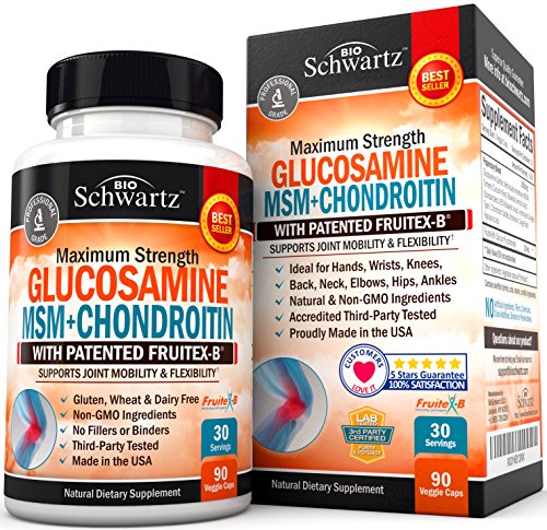 100 SATISFACTION GUARANTEE Feel healthier and stronger with BioSchwartz Glucosamine Chondroitin MSM and Turmeric with Fruitex B Joint Support Supplement or your money back no questions askedPOWERFUL JOINT PAIN RELIEF CARTILAGE SUPPORT BioSchwartz Glucosamine supplement can help build cartilage boost joint mobility increase joint flexibility support joint structure protect joint tissue and reduce inflammation Our Glucosamine MSM Chondroitin capsules can ease the pain and discomfort that comes with age weight or athletic deterioration of the joints and works for women men and seniorsSUPERIOR BIOAVAILABILITY WITH CLINICALLY RESEARCHED FRUITEX B This exclusive joint support supplement offers highly effective joint and bone support as well as enhance bioavailability thanks to the patented and clinically research Fruitex B calcium fructoborate and was careful formulated with the most powerful proven ingredients Glucosamine Methylsulfonylmethane MSM TurmericCurcumin Boswellia Serrata Hydrolyzed Collagen Chondroitin Sulfate Bromelain Ginger Root and Hyaluronic AcidMADE IN USA DOCTOR FORMULATED GMP CERTIFIED THIRD PARTY TESTED Our Chondroitin Glucosamine MSM supplement is formulated by doctors and manufactured in the USA in an FDA approved facility following strict GMP guidelines Each and every batch of our Glucosamine MSM Chondroitin capsules Glucosamine pills is third party tested to guarantee the highest purity potency and premium qualityALL NATURAL GLUTEN FREE NON GMO NO FILLERS NO BINDERS Our Professional Grade Glucosamine Chondroitin MSM with Boswellia Serrata Extract Collagen and Hyaluronic Acid is 100 natural and has been manufactured exclusively with Non GMO ingredients without fillers or dangerous chemicals These premium Glucosamine Chondroitin capsules are also FREE of gluten soy milk dairy egg corn wheat and peanutsMore Info and Reviews Manufacturer: BioSchwartz; Model: ; MPN: BIO GLUCOSAMINE FRUITEXB 90 FR 1; Part Number: BIO GLUCOSAMINE FRUITEXB 90 FR 1; UPC: 737212751214; Color: ; Brand: BioSchwartz; Department: ; Size: ; Warranty: ; Label: BioSchwartz; Amazon Sale Rank: 5122;Buy On Amazon