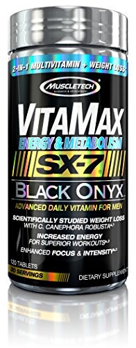 VitaMax Energy & Metabolism SX 7 Black Onyx TM for men is an unparalleled 2 in 1 multivitamin formula designed to help you lose weight with its key weight loss ingredient C. canephora Robusta. 2 in 1 formula multivitamin weight LossScientifically studied weight loss withC canephora robusta1Increased energy for superior workoutsEnhanced focus intensity Manufacturer: Iovate Health Sciences Incorporated; Model: 631656607536; MPN: 631656607536; Part Number: 631656607536; UPC: 631656607536; Color: ; Brand: MuscleTech; Department: ; Size: ; Warranty: ; Label: Iovate Health Sciences Incorporated; Amazon Sale Rank: 25082;Buy On Amazon