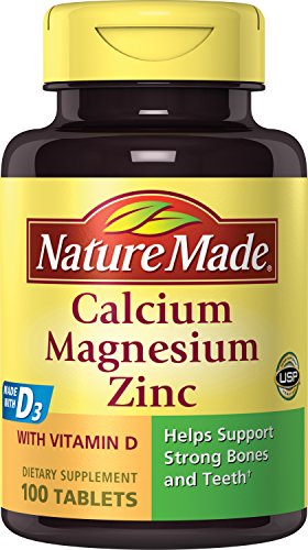 Trust your bone health with Nature Made Calcium Magnesium and Zinc. Adequate calcium and vitamin D3 throughout life as part of a well balanced diet may reduce the risk of osteoporosis. Magnesium helps support healthy bones.† Zinc is an essential mineral necessary for numerous reactions in the body.† Each tablet of Nature Made Calcium Magnesium & Zinc provides 333 mg of calcium 133 mg of magnesium and 5 mg of zinc as well as 200 IU of vitamin D. This product has key nutrients that help support strong bones as well as aid in nerve muscle and metabolic functions Zinc also participates in antioxidant processesVitamin D helps improve calcium absorptionColor Derived from Natural Sources No Synthetic DyesNo Artificial FlavorsNo PreservativesMore Info and Reviews Manufacturer: Nature Made; Model: 1470; MPN: 1470; Part Number: 1470; UPC: 031604014704; Color: ; Brand: Nature Made; Department: ; Size: Pack of 3; Warranty: ; Label: Nature Made; Amazon Sale Rank: 41828;Buy On Amazon