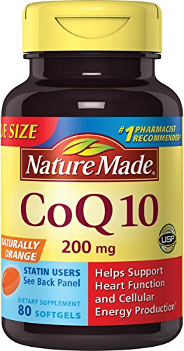 CoQ10 200 mg is a coenzyme found in all human cells that is needed to facilitate a number of important reactions in the body. CoQ10 plays a vital role in cellular energy production specifically in the generation of energy for the body’s cells to function properly. CoQ10 has been studied for the role it plays in helping to maintain healthy heart function.* STATIN USERS Certain statin drugs can reduce CoQ10 levels in the body Nature Made CoQ10 can help replenish this important nutrientCoQ10 is naturally orange in color Found in most cells in the body CoQ10 helps support heart function and cellular energy productionNo Color Added No Artificial Flavors No PreservativesSuggested Use Take one softgel daily with a meal For easier swallowing take with water before and during ingestion Instructions Do not use if imprinted seal under cap is broken or missingUnited States Pharmacopeia USP VerifiedMore Info and Reviews Manufacturer: Nature Made; Model: 2680; MPN: 2680; Part Number: 2680; UPC: 885710014291; Color: Orange; Brand: Nature Made; Department: ; Size: 80 Count; Warranty: ; Label: Nature Made; Amazon Sale Rank: 667;Buy On Amazon