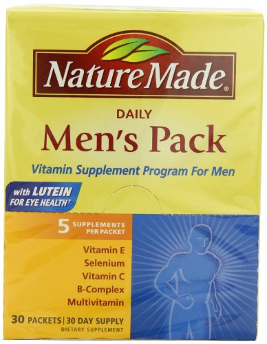 Men’s Pack provides vitamin C E Selenium a B complex and a multivitamin. Vitamins C E and the mineral selenium are important antioxidants. Antioxidants fight to stop cellular damage. B vitamins are involved in many reactions that take place in our body. They are needed for proper metabolism mental function and have recently been linked to heart health. And an additional multivitamin/mineral supplement ensures adequate intake of other important vitamins and minerals. Choosing supplementation based on gender is a smart way to start a nutritional supplementation program. Men’s Pack can be recommended as part of a daily regimen for Men’s Health 4 Basic Vitamins. No artificial colorsNo artificial flavorsNo preservativesMore Info and Reviews Manufacturer: Nature Made; Model: PHARMAVITE140095; MPN: 1025; Part Number: 1025; UPC: 885548642383; Color: ; Brand: Nature Made; Department: ; Size: 30; Warranty: ; Label: Nature Made; Amazon Sale Rank: 41056;Buy On Amazon