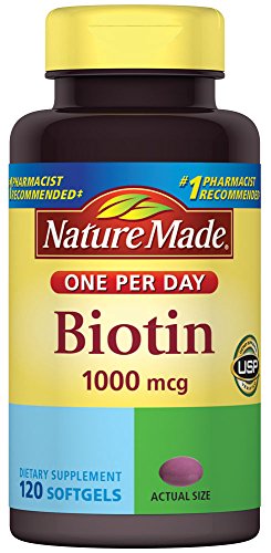 Nature Made One Per Day Biotin (B7) 1000 mcg. Softgels 120 Ct Nature Made Biotin B7 liquid softgels contain 1 000 mcg of biotin which supports the metabolism of carbohydrates protein and fatsTake one softgel daily with a meal For easier swallowing take with water before and during ingestionColors Derived from Natural Sources No Synthetic DyesNature Made Biotin Liquid Softgel 1 000 mcg is guaranteed to meet our high quality standards it is made from carefully selected ingredients under strict manufacturing processesUnited States Pharmacopeia USP VerifiedNo Artificial Flavors Preservatives Yeast or StarchGluten FreeMore Info and Reviews Manufacturer: Pharmavite; Model: 4273; MPN: 4273; Part Number: 4273; UPC: 031604042738; Color: ; Brand: Nature Made; Department: ; Size: 120 Count; Warranty: ; Label: Pharmavite; Amazon Sale Rank: 5225;Buy On Amazon