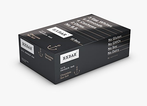 RXBAR Whole Food Protein Bar Chocolate Sea Salt 1.83oz Bars 12 Count RXBARs are whole food protein bars made with clean simple ingredients Egg whites dates and nuts are combined with delicious flavors to create a nutritious barOur top seller Chocolate Sea Salt is the perfect balance of salty and sweet Combining flavors like 100 chocolate and sea salt this bar is both decadent and good for youNo added sugar no gluten no dairy no soy no artificial flavors no preservatives no fillers non GMO whole 30 compliant kosher no BS Not a low calorie food12g protein 5g fiber 210 calories 0g added sugarsNo surprises here One look at our wrapper and you can see what were all aboutMore Info and Reviews Manufacturer: HealthLife NY; Model: 857777004300; MPN: RXB00430; Part Number: RXB00430; UPC: 741026896030; Color: Chocolate Sea Salt; Brand: RXBAR; Department: ; Size: 12 Count; Warranty: ; Label: HealthLife NY; Amazon Sale Rank: 7;Buy On Amazon