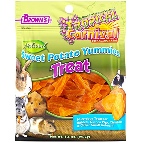 Brown’s Tropical Carnival Natural Sweet Potato Yummies for small animals are nutritious wholesome natural treats rich in antioxidants. Sweet potatoes are packed full of vitamins & minerals including Vitamin C. They’re a fun and interactive treat for small animals of all varieties. GREAT FOR SMALL ANIMALS Delicious and nutritious treat for rabbits guinea pigs hamsters gerbils chinchillas rats mice and other small animalsIMMUNE SYSTEM SUPPORT All natural sweet potatoes contain antioxidants that help maintain a healthy immune systemPERFECT FOR TRAINING These are an excellent healthy reward for training or treatingMore Info and Reviews Manufacturer: F M Brown s; Model: 423202; MPN: 423202; Part Number: 423202; UPC: 042934449708; Color: ; Brand: Tropical Carnival; Department: ; Size: 3 5 oz ; Warranty: ; Label: F M Brown s; Amazon Sale Rank: 16981;Buy On Amazon