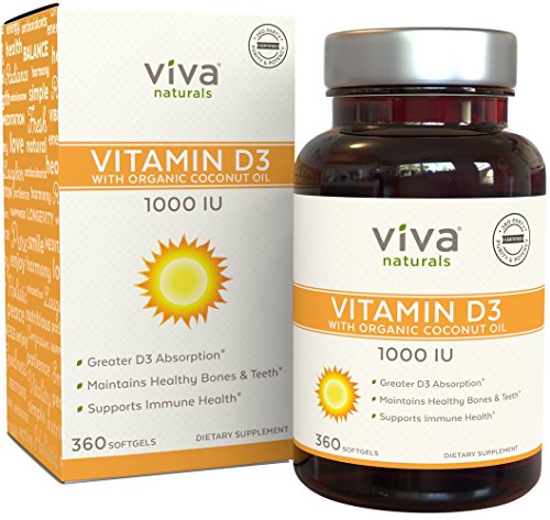 Proudly made in the USA in GMP compliant facilities Viva Naturals Vitamin D3 delivers the highest quality non GMO ingredients free of soy gluten artificial colors and preservatives. BOOSTS YOUR DAILY DOSE It can be tough to get enough vitamin D through diet alone And while wearing sunscreen and limiting sun exposure is a good thing you may not be getting as much vitamin D from the sunshine as you may think Our easy to swallow softgels are an easy way to get a healthy daily doseMAINTAINS HEALTHY BONES TEETH AND MUSCLE FUNCTION Vitamin D is also important because it helps your body absorb calcium a mineral essential for healthy bones and teeth Its even been shown to maintain healthy muscle functionPROVIDES IMMUNE SYSTEM SUPPORT Like vitamin C vitamin D is also known to help keep aspects of your immune system functioning well which is your bodys first line of defenceABSORBS EASILY Your body produces vitamin D3 when your skin is exposed to sunshine so supplementing with Viva Naturals Vitamin D3 is a natural choice to ensure youre getting a vitamin D3 supplement that your body can easily absorbPREMIUM QUALITY PURITY Proudly made in the USA in GMP compliant facilities Viva Naturals Vitamin D3 delivers the highest quality non GMO ingredients free of soy gluten artificial colors and preservativesMore Info and Reviews Manufacturer: Viva Naturals; Model: ; MPN: 4041; Part Number: 4041; UPC: 811067030622; Color: ; Brand: Viva Naturals; Department: ; Size: 1 000 IU; Warranty: ; Label: Viva Naturals; Amazon Sale Rank: 24960;Buy On Amazon