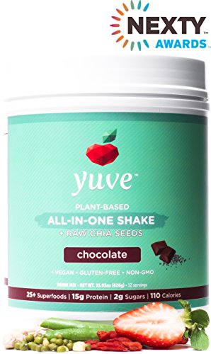 CLEAN PURE AWARD WINNING FLAVOR Try THE ONLY vegan protein powder that tastes great Ranked as the Best Tasting Chocolate Vegan Protein Shake by PETA Winner of the 2015 Vegnews Magazines Veggie Awards No natural flavors or anything artificial Supercharge your morning Smoothie Green Juice or drink it on the go with just organic almond milk Available in two flavors vanilla bean and chocolateWEIGHT LOSS INCREASED ENERGY BEAT HUNGER CRAVINGS Use Yuve All in One Nutritional Shake as a and complete low calorie meal replacement as a low carb diet breakfast or as a low sugar energy booster pre and post workout One serving contains 15 grams of plant based Protein from peas and brown rice 8 grams of Fiber which help you feel full for longer and only 2 grams of Sugar Vitamins minerals probiotics prebiotics and antioxidants from whole foodsNOTHING ARTIFICIAL CREAMY SMOOTH DELICIOUS Gluten free non GMO dairy free soy free egg white free animal free cruelty free hemp free hormone free whey free lactose free NOTHING artificial Experience the cleanest greenest veganvegetarian protein powder on the market Most vegan protein powders taste gritty and chalky Yuve uses high quality protein from peas and brown rice which has a great mouthfeelONLY THE BEST INGREDIENTS Boost your Vitality with 25 Superfoods Raw Chia Seeds 110 Calories per Serving Made in America High Protein and Greens Perfect Mix of Nutrients Healthy Beverage Low Sodium Lean Natural Protein Total Vegan Sweetened with Stevia and Organic Raspberry100 MONEY BACK GUARANTEE If Youre Not Happy We are Not Happy Simply Ask us for a Full Refund Manufacturer: Yuve; Model: ; MPN: YSHAKCHOSM; Part Number: YSHAKCHOSM; UPC: 852862007020; Color: ; Brand: Yuve; Department: ; Size: 12 Servings Tub; Warranty: ; Label: Yuve; Amazon Sale Rank: 21721;Buy On Amazon